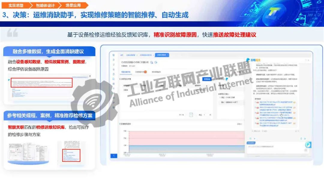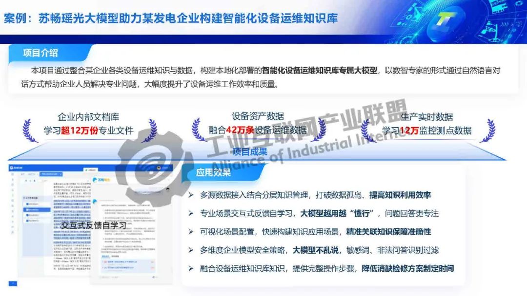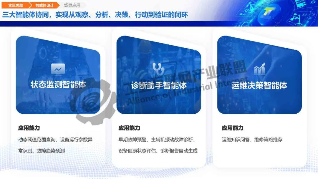 毛旭初介紹,工業(yè)大模型基于海量工業(yè)多模態(tài)數(shù)據(jù)訓(xùn)練,具備工業(yè)知識(shí)推理、生產(chǎn)風(fēng)險(xiǎn)識(shí)別、工藝仿真優(yōu)化等決策能力?,幑夤I(yè)大模型在小模型的基礎(chǔ)上加持大模型的生成、推理、調(diào)度能力,實(shí)現(xiàn)故障綜合判斷,三大智能體協(xié)同,實(shí)現(xiàn)從觀察、分析、決策、行動(dòng)到驗(yàn)證的閉環(huán)。