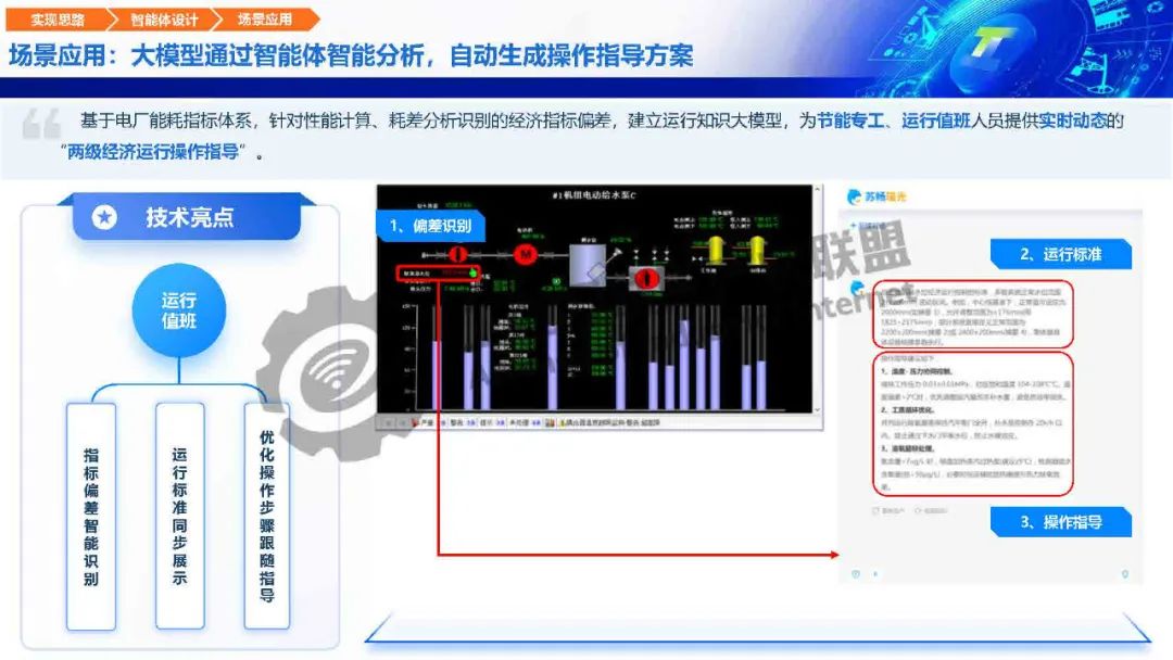 針對運(yùn)行調(diào)優(yōu)煤耗影響因子復(fù)雜、偏差分析難度大、運(yùn)行操作要求高等痛點(diǎn),瑤光工業(yè)大模型構(gòu)建機(jī)組運(yùn)行尋優(yōu)智能體、運(yùn)行問答智能體、運(yùn)行培訓(xùn)智能體,重點(diǎn)打造機(jī)組性能智能評價(jià)、尋優(yōu)推理、報(bào)告自動(dòng)生成核心能力,用知識(shí)經(jīng)驗(yàn)?zāi)P蛢?yōu)化機(jī)組“性能評價(jià)、節(jié)能診斷、生產(chǎn)調(diào)度、運(yùn)行操作”關(guān)鍵生產(chǎn)流程,全面保障各機(jī)組運(yùn)行可靠性,提升經(jīng)濟(jì)運(yùn)行水平。