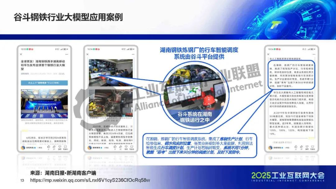 介紹,谷斗科技提出“大小模型融合”方案,以驅(qū)動(dòng)工業(yè)智能決策發(fā)展。該方案結(jié)合大模型的邏輯推理能力與小模型的精確計(jì)算優(yōu)勢(shì),通過平臺(tái)化工具實(shí)現(xiàn)資源優(yōu)化與智能決策。大模型負(fù)責(zé)交互感知與任務(wù)編排,小模型則處理具體業(yè)務(wù)規(guī)則,形成產(chǎn)業(yè)智能體,快速響應(yīng)緊急工單等動(dòng)態(tài)需求。應(yīng)用場(chǎng)景覆蓋運(yùn)營(yíng)助手、開發(fā)顧問、業(yè)務(wù)專家三大方向,支持低代碼配置與自動(dòng)規(guī)則推薦,助力鋼鐵等行業(yè)實(shí)現(xiàn)全局資源優(yōu)化。谷斗獨(dú)創(chuàng)“平臺(tái)+模型”模式,兼顧標(biāo)準(zhǔn)化與靈活性,推動(dòng)跨行業(yè)高效協(xié)同決策。
