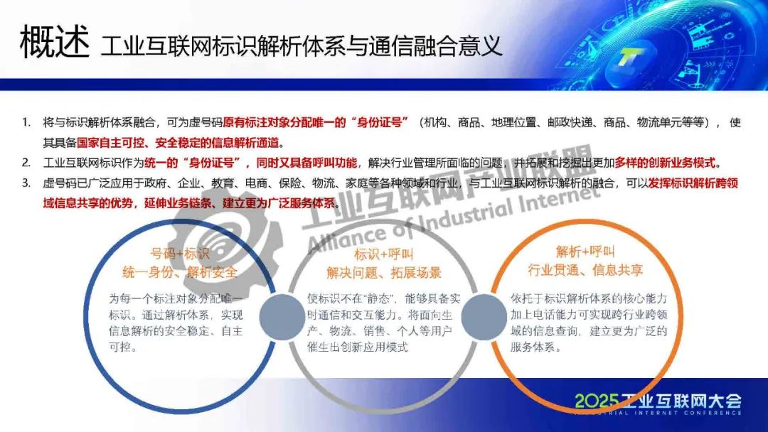 孫大成介紹,工業互聯網標識作為統一的“身份證號”,同時又具備呼叫功能,解決行業管理所面臨的問題,并拓展和挖掘出更加多樣的創新業務模式。 虛號碼已廣泛應用于政府、企業、教育、電商、保險、物流、家庭等各種領域和行業,與工業互聯網標識解析的融合,可以發揮標識解析跨領域信息共享的優勢,延伸業務鏈條、建立更為廣泛服務體系,將與標識解析體系融合,可為虛號碼原有標注對象分配唯一的“身份證號”, 使其具備國家自主可控、安全穩定的信息解析通道。