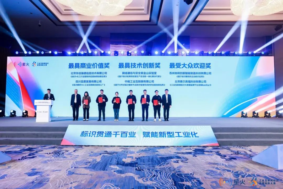 北京華信瑞德信息技術有限公司的《標識+化工行業(yè)國際供應鏈協(xié)同創(chuàng)新應用》,四川亞度家具有限公司的《標識解析5G+工業(yè)互聯(lián)網(wǎng)全鏈接工廠》獲最具商業(yè)價值獎;網(wǎng)絡通信與安全紫金山實驗室的《基于標識檢索的輪轂生產(chǎn)全流程一體化解決方案》,中船工業(yè)互聯(lián)網(wǎng)有限公司的《基于分布式標識解析節(jié)點同步管理系統(tǒng)的供應鏈協(xié)同應用》獲最具技術創(chuàng)新獎;蘇州協(xié)同創(chuàng)新智能制造科技有限公司的《基于標識解析的主動標識應用》,北京泰爾英福科技有限公司的《工業(yè)互聯(lián)網(wǎng)標識大數(shù)據(jù)監(jiān)測平臺IDMonitor》獲最受大眾歡迎獎。