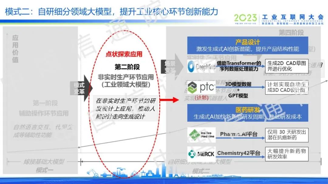 以自研細(xì)分領(lǐng)域大模型為主的模式二已在設(shè)計研發(fā)環(huán)節(jié)實現(xiàn)初步應(yīng)用。產(chǎn)品設(shè)計場景可基于生成式AI的創(chuàng)新能力實現(xiàn)產(chǎn)品結(jié)構(gòu)性能提升;醫(yī)藥研發(fā)場景可基于生成式AI加快新藥物研發(fā)效率。