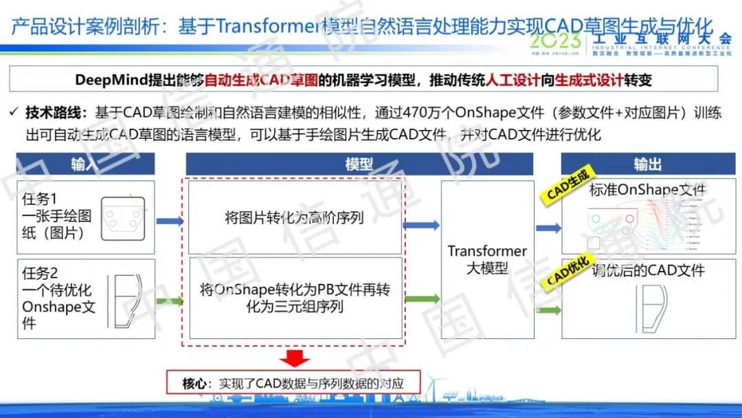 以產(chǎn)品設(shè)計場景為例,通過利用Transformer模型的自然語言處理能力提升研發(fā)效率。其本質(zhì)是將輸入的CAD數(shù)據(jù)轉(zhuǎn)化為序列數(shù)據(jù)以充分適配Transformer模型,通過構(gòu)建研發(fā)領(lǐng)域大模型實現(xiàn)CAD圖像生成與優(yōu)化功能,這意味著傳統(tǒng)人工設(shè)計正加速向生成式設(shè)計轉(zhuǎn)變。