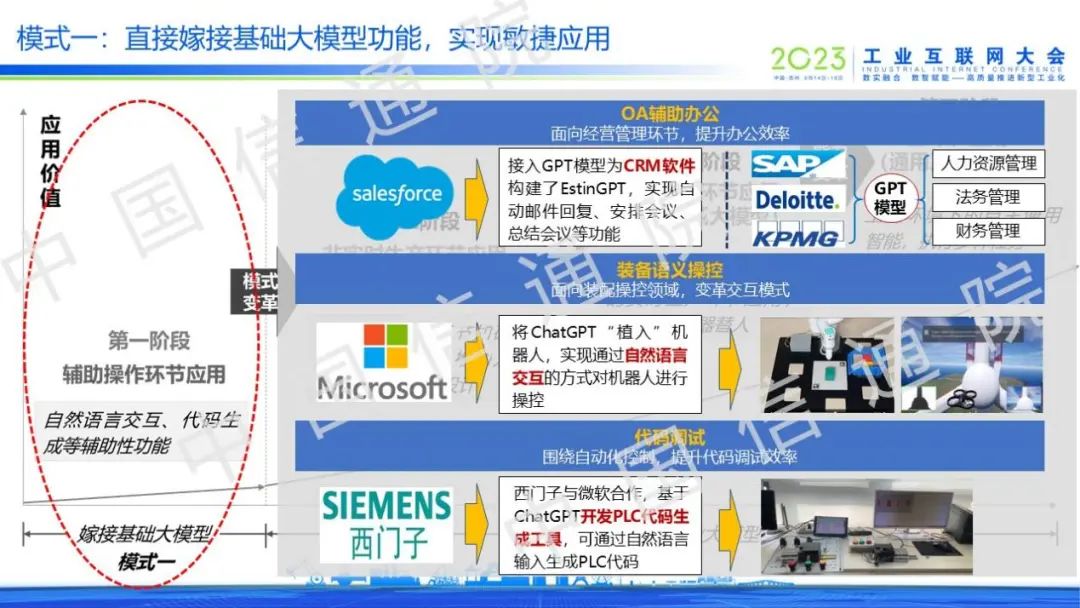 以直接嫁接基礎(chǔ)大模型功能為主的模式一是利用基礎(chǔ)大模型的自然語言理解、代碼生成等能力,實現(xiàn)OA輔助辦公、裝備語義操控和代碼調(diào)試等探索應(yīng)用,但均已提升效率為主,尚未觸及工業(yè)核心環(huán)節(jié)。