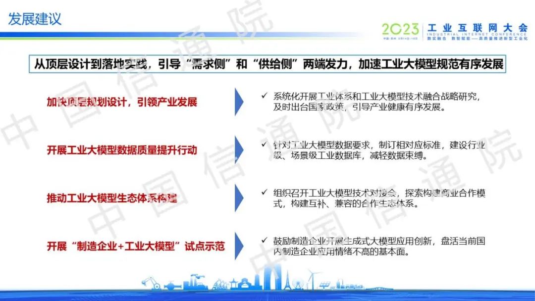 工業(yè)大模型的發(fā)展過程中面臨著數(shù)據(jù)、產(chǎn)業(yè)、技術(shù)三大挑戰(zhàn),亟需從頂層設(shè)計到落地實踐提出發(fā)展策略,引導(dǎo)“需求側(cè)”和“供給側(cè)”兩端發(fā)力,加速工業(yè)大模型規(guī)范有序發(fā)展。