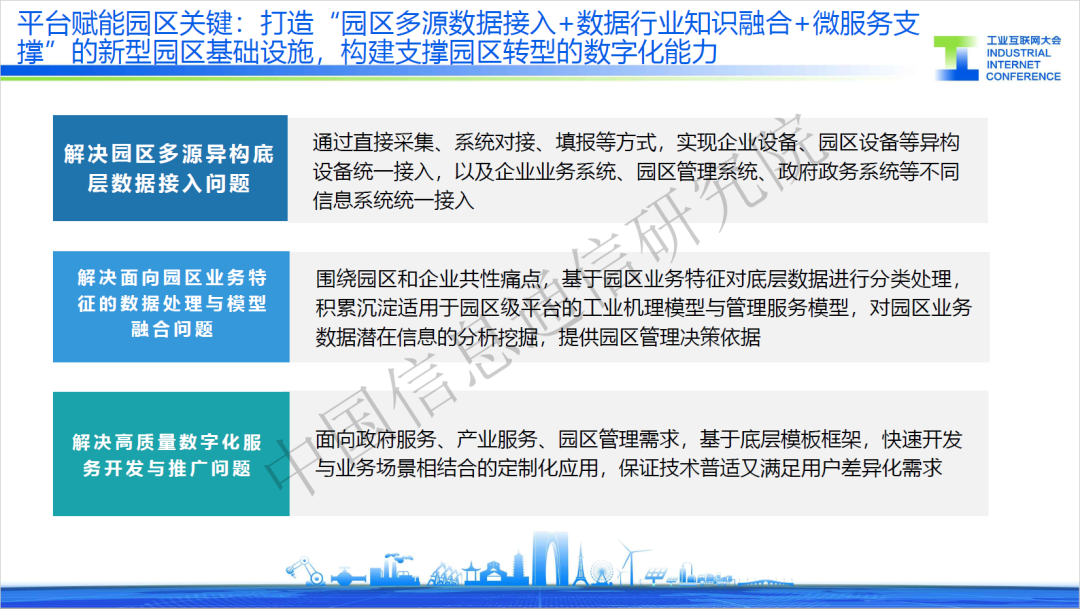 6月15日,2023工業互聯網大會在蘇州舉行,在“工業互聯網平臺創新發展”論壇上,中國信通院兩化所工互創新部楊昊亭發布了《“工業互聯網平臺+園區”典型場景》(以下簡稱“典型場景”)并進行了解讀。園區作為產業發展的主陣地,是推動我國經濟發展的重要引擎。“典型場景”圍繞園區高質量發展需求,提出了產業公共服務、企業轉型服務、政府監測監管、園區綜合管理四類應用場景,旨在為提升園區治理能力與加速產業轉型升級提供可借鑒的經驗和模式。