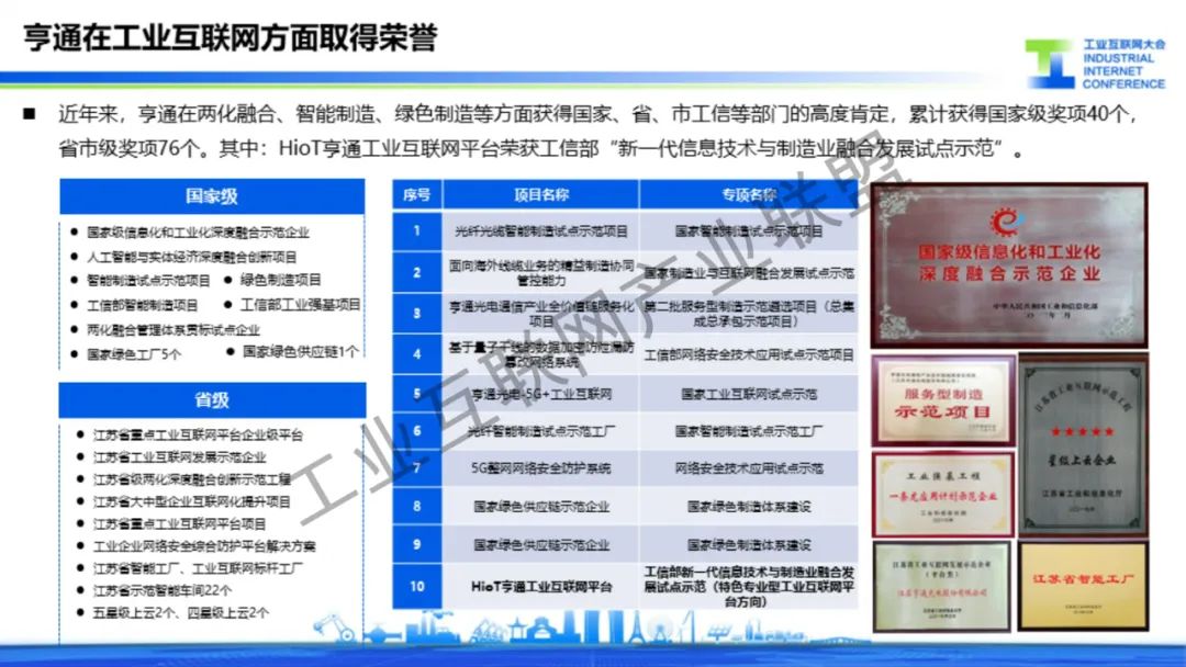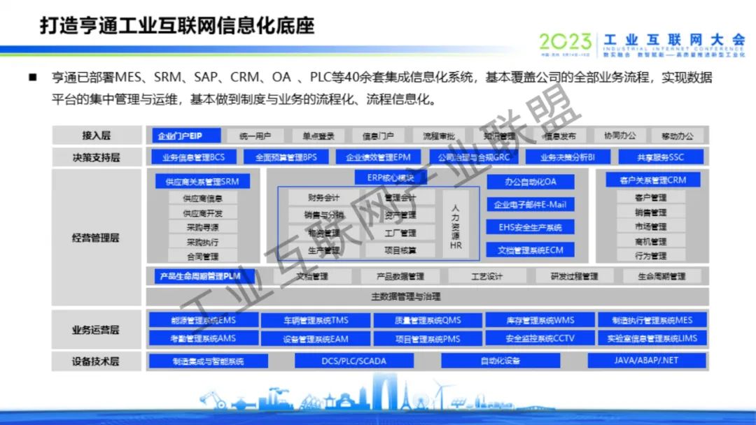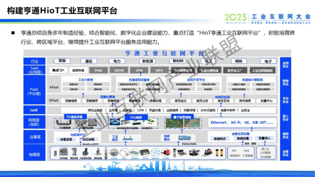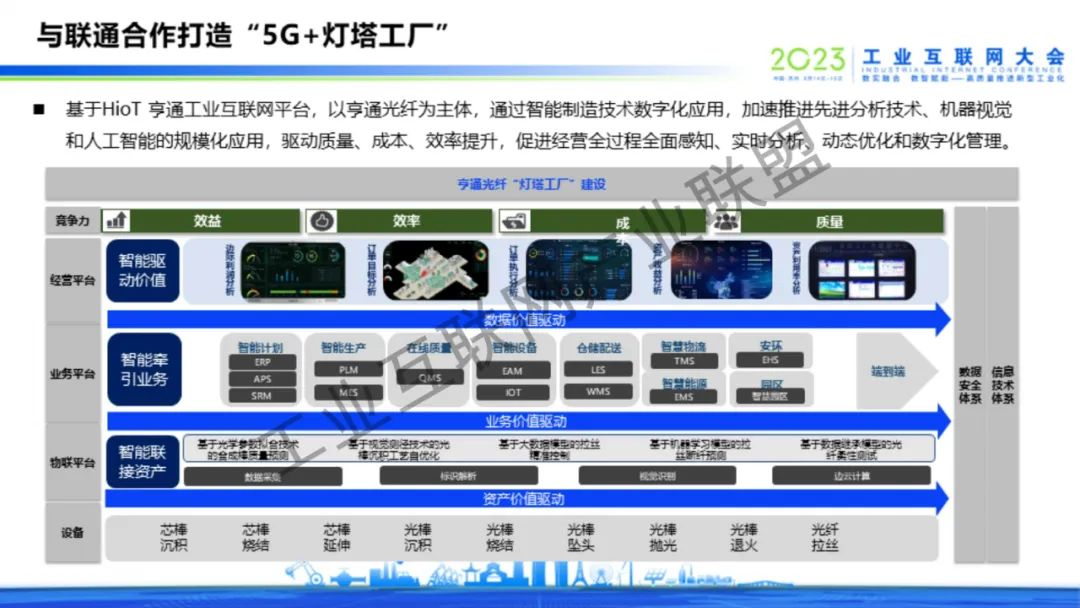 6月16日上午,亨通集團執(zhí)行總裁錢建林以“全面擁抱工業(yè)互聯(lián)網(wǎng),激發(fā)企業(yè)發(fā)展新動能”為題,在2023工業(yè)互聯(lián)網(wǎng)大會工業(yè)互聯(lián)網(wǎng)趨勢洞察與路徑探索高峰對話上作主題演講。結合亨通在工業(yè)互聯(lián)網(wǎng)賦能企業(yè)數(shù)字化、信息化、智能化發(fā)展的實踐經(jīng)驗和成果案例,依托5G+工業(yè)互聯(lián)網(wǎng)的融合應用、縱深發(fā)展優(yōu)勢,在內(nèi)率先實現(xiàn)智能化改造數(shù)字化升級,打造了一批批智能制造示范工廠、工業(yè)互聯(lián)網(wǎng)平臺,為企業(yè)高質量發(fā)展提供了新模式,增添了新動能;在外憑借工業(yè)互聯(lián)網(wǎng)的先進技術優(yōu)勢,重點打造亨通HioT工業(yè)互聯(lián)網(wǎng)平臺,以產(chǎn)業(yè)數(shù)字化迭代升級賦能行業(yè)高質量發(fā)展。錢建林表示,亨通HioT工業(yè)互聯(lián)網(wǎng)平臺以“江蘇亨通數(shù)字智能科技有限公司”(簡稱:亨通數(shù)科)為載體,從工業(yè)互聯(lián)網(wǎng)賦能智能制造、綠色生產(chǎn)、智慧產(chǎn)業(yè)園區(qū)、中小企業(yè)數(shù)字化水平等領域,聚焦行業(yè)痛點,為13個行業(yè)提供67項最佳實踐解決方案,將亨通的經(jīng)驗和成果分享給各行業(yè)、各企業(yè)。未來,亨通將加快構建更高水平、更廣范圍、更深層次的制造業(yè)數(shù)字化發(fā)展格局,助力形成具有全球競爭力的“5G+工業(yè)互聯(lián)網(wǎng)”產(chǎn)業(yè)集群,推動加快建設制造強國、網(wǎng)絡強國,在中國式現(xiàn)代化新實踐中再作新的更大貢獻。
