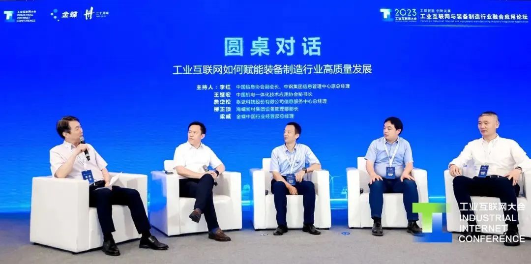 論壇現(xiàn)場(chǎng),主題為《工業(yè)互聯(lián)網(wǎng)如何賦能裝備制造行業(yè)高質(zhì)量發(fā)展》的圓桌對(duì)話成為焦點(diǎn)。中國(guó)信息協(xié)會(huì)副會(huì)長(zhǎng)、中鋼集團(tuán)信息管理中心原總經(jīng)理李紅,中國(guó)機(jī)電一體化技術(shù)應(yīng)用協(xié)會(huì)代理秘書(shū)長(zhǎng)王繼宏,海螺新材設(shè)備管理部部長(zhǎng)柳正頂,泰豪公司信息服務(wù)部總經(jīng)理詹岱松,金蝶中國(guó)行業(yè)經(jīng)營(yíng)部總經(jīng)理梁威共商共話,為制造業(yè)數(shù)字化轉(zhuǎn)型方法論及應(yīng)用實(shí)踐提供了前瞻之道。