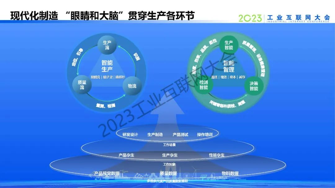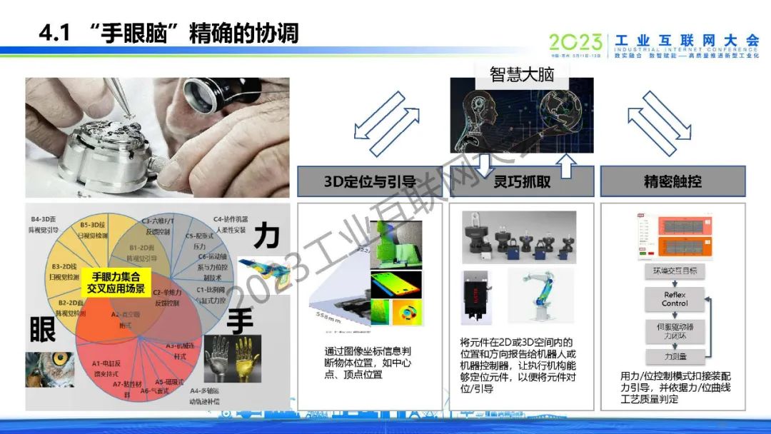 林杰分享智能制造產業趨勢和特征,指出了傳統制造型企業“智改數轉”的痛點,提出要為制造配上“慧眼”。他表示人工智能的飛速發展,為工業發展插上翅膀,通過“手眼腦”精確的協調和執行來解決問題。