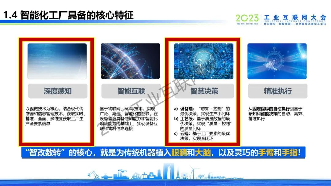 未來智能化工廠具備以下四個特征:深度感知,智能互聯,智慧決策和精準執行?!爸歉臄缔D”的核心,就是為傳統機器植入眼睛和大腦,以及靈巧的手臂和手指!