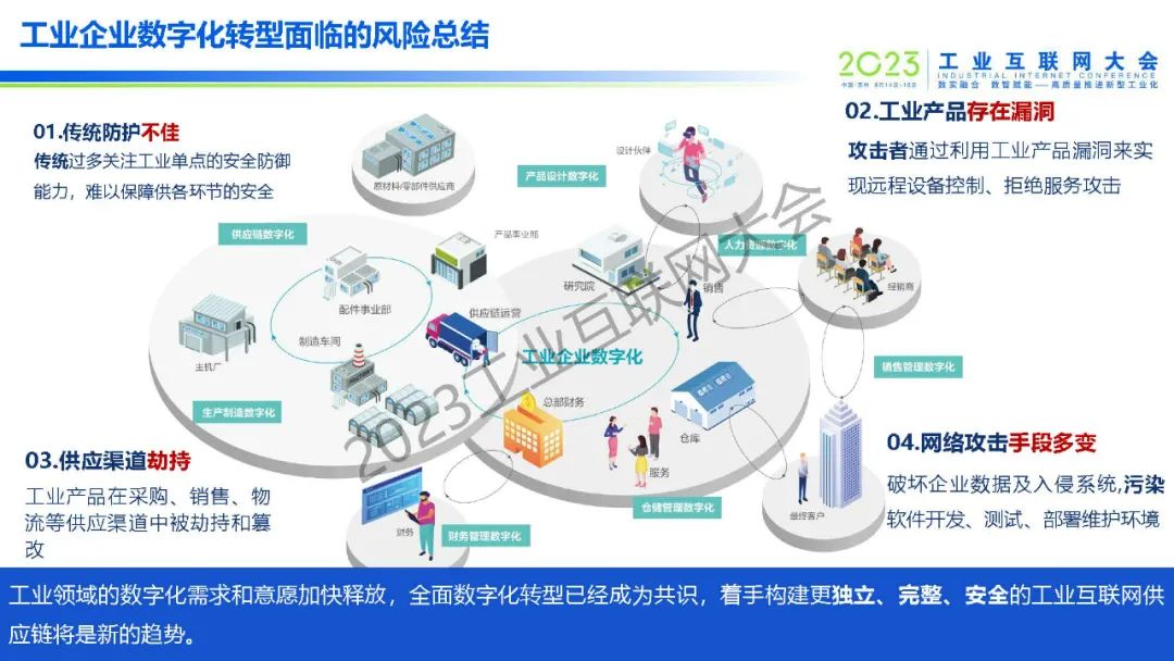 “工業(yè)領(lǐng)域的數(shù)字化需求和意愿加快釋放,全面數(shù)字化轉(zhuǎn)型已經(jīng)成為共識(shí)。然而,工業(yè)企業(yè)面臨著傳統(tǒng)防護(hù)效果不佳、工業(yè)產(chǎn)品存在漏洞、工業(yè)產(chǎn)品在供應(yīng)渠道中被劫持和篡改、網(wǎng)絡(luò)攻擊手段多變等風(fēng)險(xiǎn),構(gòu)建更獨(dú)立、完整、安全的工業(yè)互聯(lián)網(wǎng)供應(yīng)鏈將是新的趨勢(shì)。”
