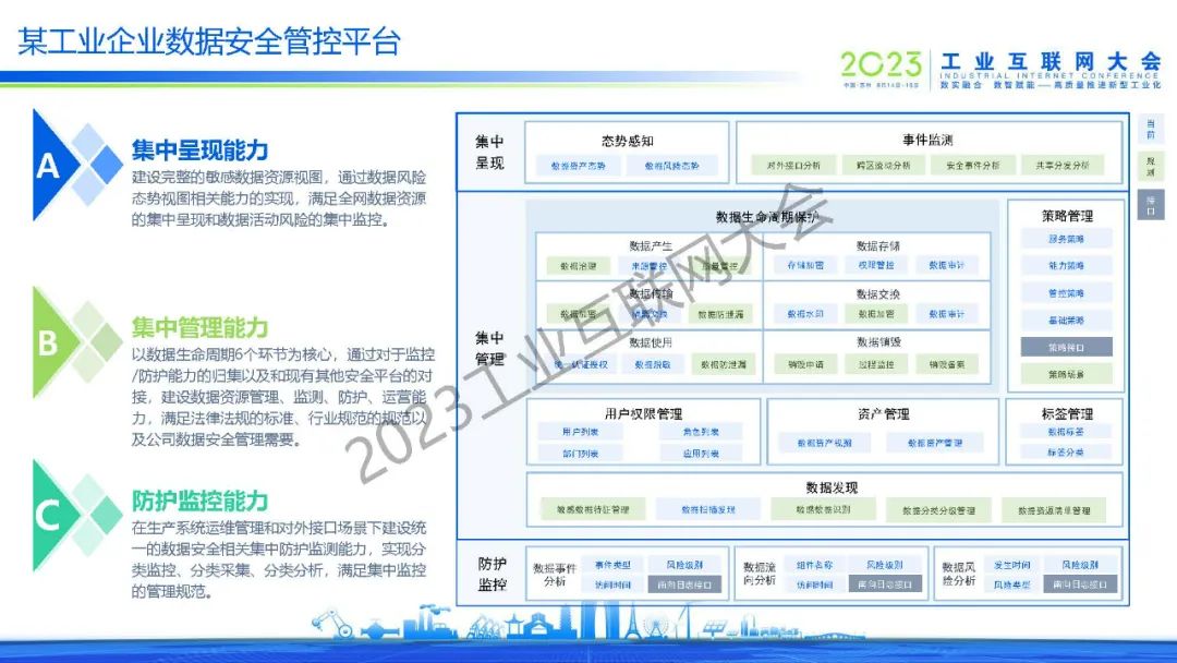 “遵循數(shù)據(jù)安全原則,以數(shù)據(jù)安全分級為基礎,實現(xiàn)覆蓋數(shù)據(jù)生命周期全過程的數(shù)據(jù)自身安全,并結合業(yè)務活動安全、基礎安全、安全運營,建立“三橫三縱”的工業(yè)互聯(lián)網(wǎng)數(shù)據(jù)安全防護體系,全面加強工業(yè)數(shù)據(jù)安全保護能力。”