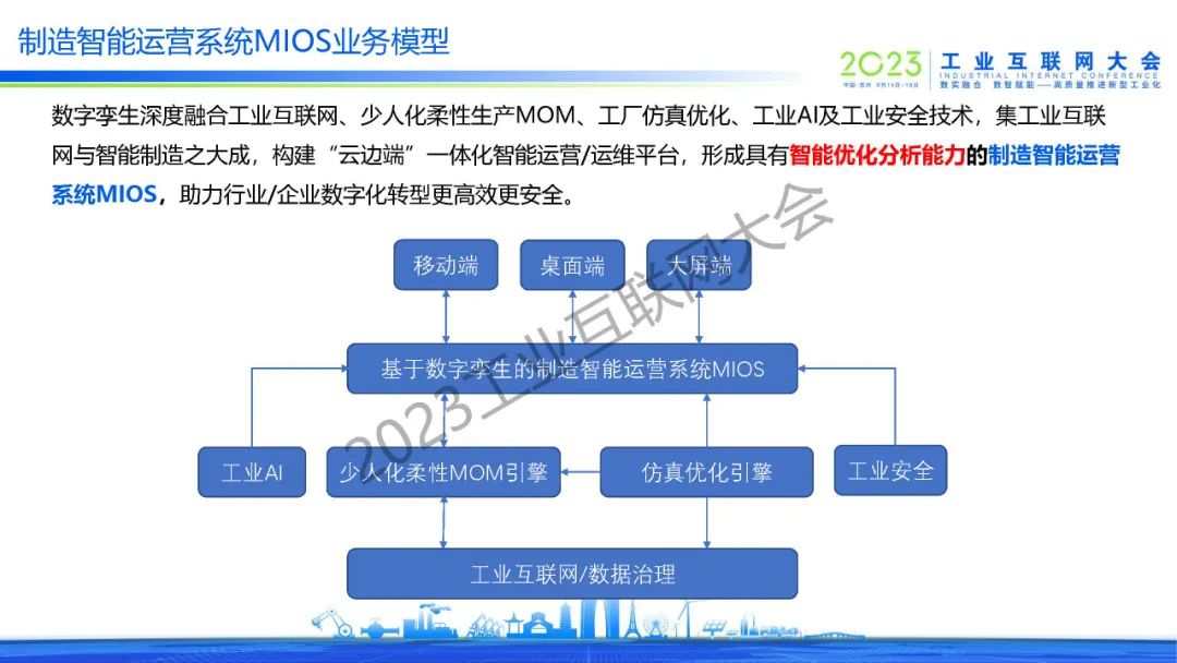 “制造智能運營系統MIOS的理念提出,基于數字孿生底座,深度融合工業互聯網、少人化柔性生產MOM、工廠仿真FS、工業AI及工業安全等關鍵技術,構建“云/邊/端”一體化智能運營/運維平臺。MIOS具有強大的智能分析能力,正在推動工業AI和工廠仿真FS實現從“看見”到“理解”的跨越,使得齊套性預測、智能調度、預測性維護等工作變得可能,助力傳統行業/企業數字化轉型更高效更安全?!?/p>
