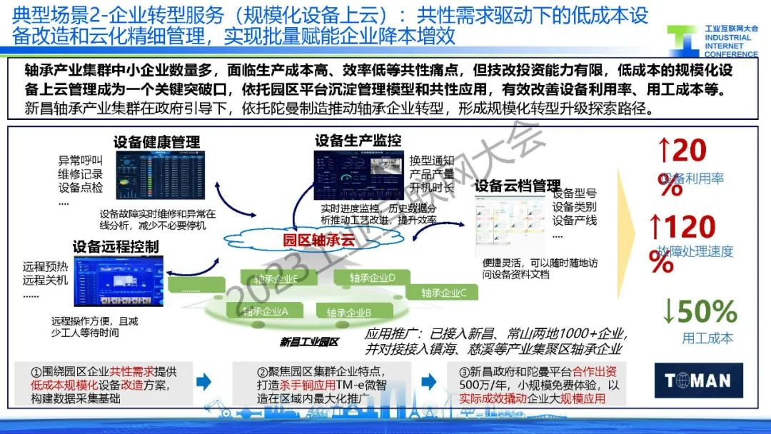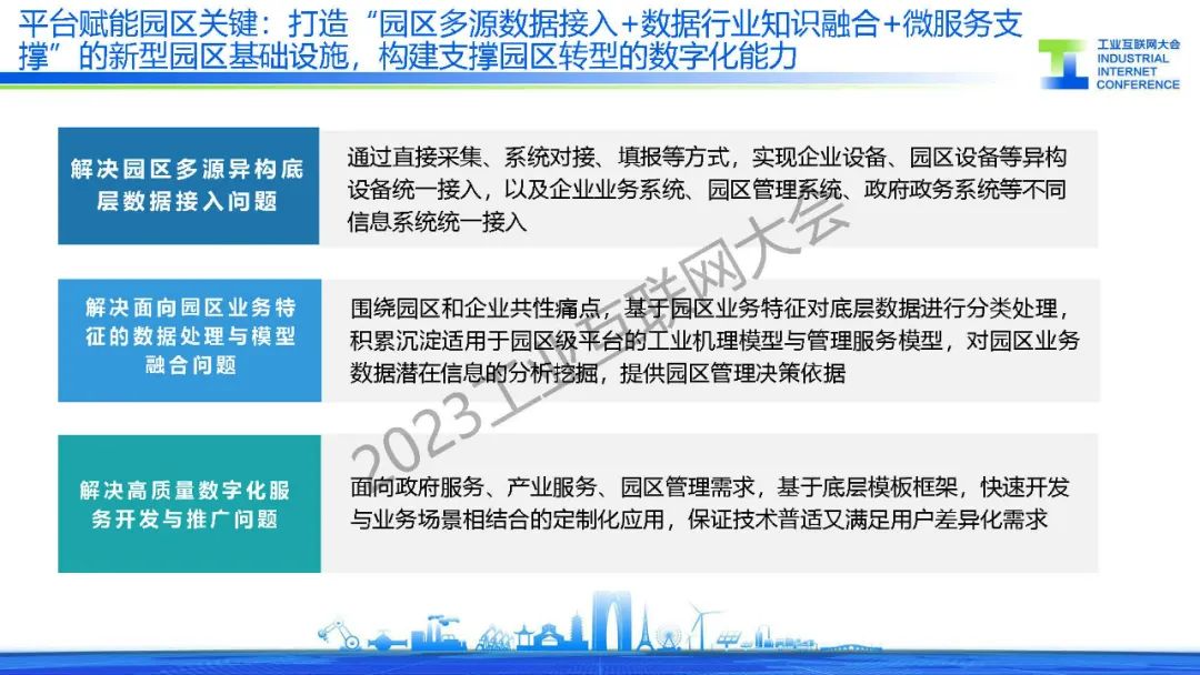 楊昊亭指出,工業(yè)互聯(lián)網(wǎng)進(jìn)入應(yīng)用推廣期形成兩條典型路徑,園區(qū)落地成為重要選擇。工業(yè)園區(qū)是制造業(yè)數(shù)字化主戰(zhàn)場,對工業(yè)互聯(lián)網(wǎng)平臺(tái)需求迫切。后續(xù)平臺(tái)賦能園區(qū)關(guān)鍵是打造“園區(qū)多源數(shù)據(jù)接入+數(shù)據(jù)行業(yè)知識(shí)融合+微服務(wù)支撐”的新型園區(qū)基礎(chǔ)設(shè)施,構(gòu)建支撐園區(qū)轉(zhuǎn)型的數(shù)字化能力。