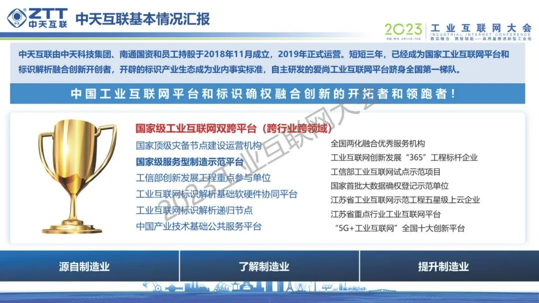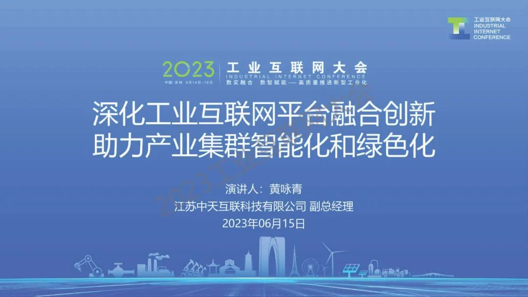 6月15日,在2023工業(yè)互聯(lián)網(wǎng)大會“工業(yè)互聯(lián)網(wǎng)平臺創(chuàng)新發(fā)展論壇”上,江蘇中天互聯(lián)科技有限公司副總經(jīng)理黃詠青發(fā)表了《深化工業(yè)互聯(lián)網(wǎng)平臺融合創(chuàng)新 助力產(chǎn)業(yè)智能化與綠色發(fā)展》的演講。