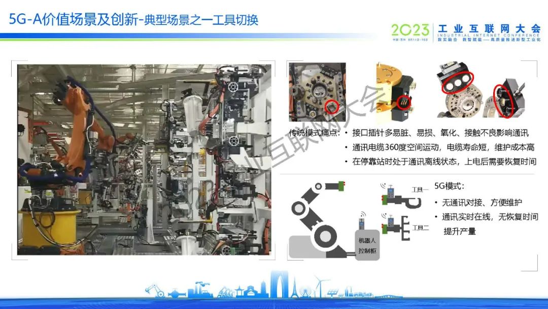 何流介紹了5G-A URLLC 汽車柔性產(chǎn)線,該產(chǎn)線由5G-A技術和工控設備5G化兩大技術托底。他提出,5G-A價值場景及創(chuàng)新的核心價值是產(chǎn)能提升、一網(wǎng)增效、和控制器集中化,該實驗成果完成一階段基于TUE設備的驗證,實現(xiàn)了網(wǎng)絡傳輸時延遲4ms,99.999%可靠性,滿足工業(yè)應用需求,實現(xiàn)了IT、OT深度融合、一網(wǎng)增效。