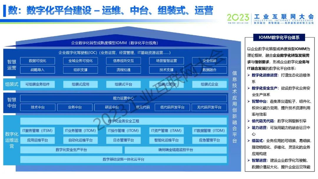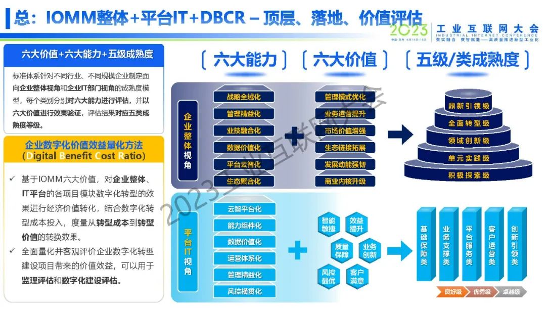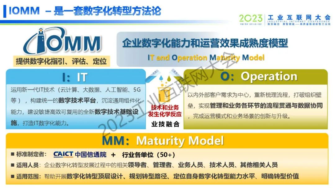 6月14日,在2023工業(yè)互聯(lián)網(wǎng)大會“工業(yè)互聯(lián)網(wǎng)助力企業(yè)數(shù)字化轉(zhuǎn)型高端論壇”上,中國信息通信研究院云計(jì)算與大數(shù)據(jù)研究所副所長栗蔚發(fā)表了《企業(yè)數(shù)字化能力和運(yùn)營效果成熟度模型IOMM 2.0發(fā)布與解讀》的主題演講。