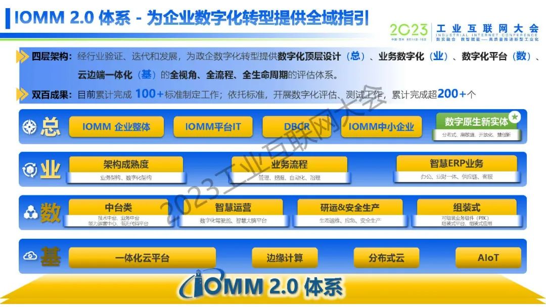 栗蔚表示,我國已基本形成完善的數(shù)字經(jīng)濟(jì)頂層設(shè)計(jì)與細(xì)化的行業(yè)推進(jìn)舉措相結(jié)合的政策體系。數(shù)字經(jīng)濟(jì)政策部署已經(jīng)成為我國構(gòu)建現(xiàn)代化產(chǎn)業(yè)、市場、治理體系的重要組成,成為推進(jìn)中國式現(xiàn)代化的重要驅(qū)動(dòng)。IOMM2.0體系是一套數(shù)字化轉(zhuǎn)型方法論,將為企業(yè)數(shù)字化轉(zhuǎn)型提供全域指引。