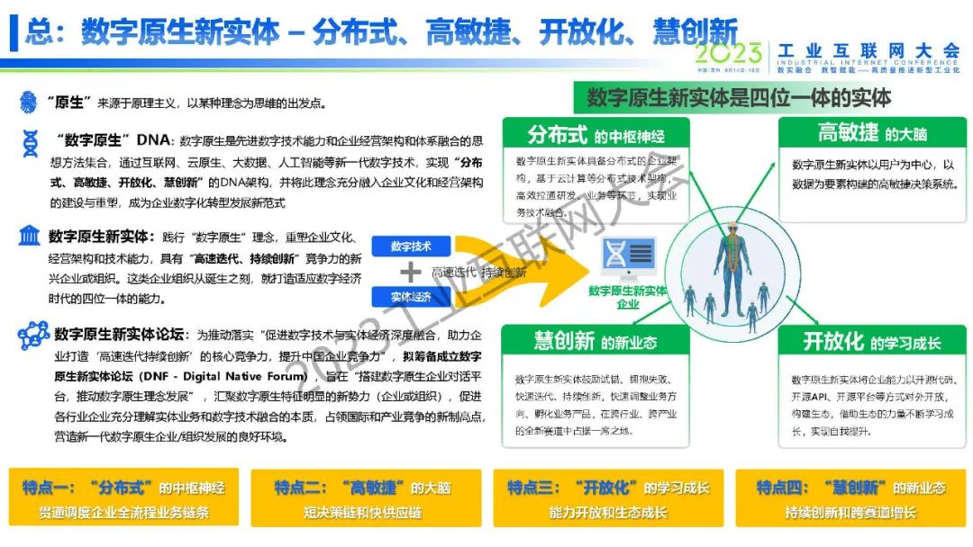 “企業(yè)數(shù)字化是轉(zhuǎn)型和賦能交替發(fā)展的旅程,不同行業(yè)根據(jù)數(shù)字原生程度不同,處于不同階段和角色定位,但是轉(zhuǎn)型方向和終極目標(biāo)一致。企業(yè)數(shù)字化轉(zhuǎn)型的終點(diǎn)是邁向數(shù)字原生。”