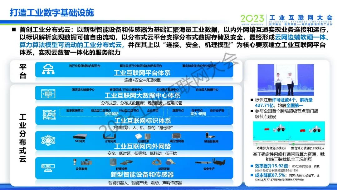 “首創(chuàng)工業(yè)分布式云是以新型智能設(shè)備和傳感器為基礎(chǔ)匯聚海量工業(yè)數(shù)據(jù),以內(nèi)外網(wǎng)絡(luò)互通實現(xiàn)業(yè)務(wù)連接和運行,以標(biāo)識解析實現(xiàn)數(shù)據(jù)可信自由流動,以分布式云平臺支撐分布式數(shù)據(jù)存儲及安全,最終形成云網(wǎng)邊端軟硬一體、算力算法模型可流動的工業(yè)分布式云,并在其上以“連接、安全、機理模型”為核心要素建立工業(yè)互聯(lián)網(wǎng)平臺體系,實現(xiàn)云數(shù)智一體化的服務(wù)能力。“