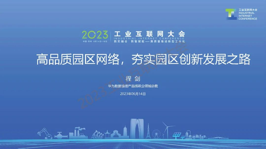 6月15日,在2023工業互聯網大會“工業互聯網‘百城千園行’高端論壇”上,華為技術有限公司數據通信政企領域總裁程劍發表了《高品質園區網絡,夯實園區創新發展之路》的演講。