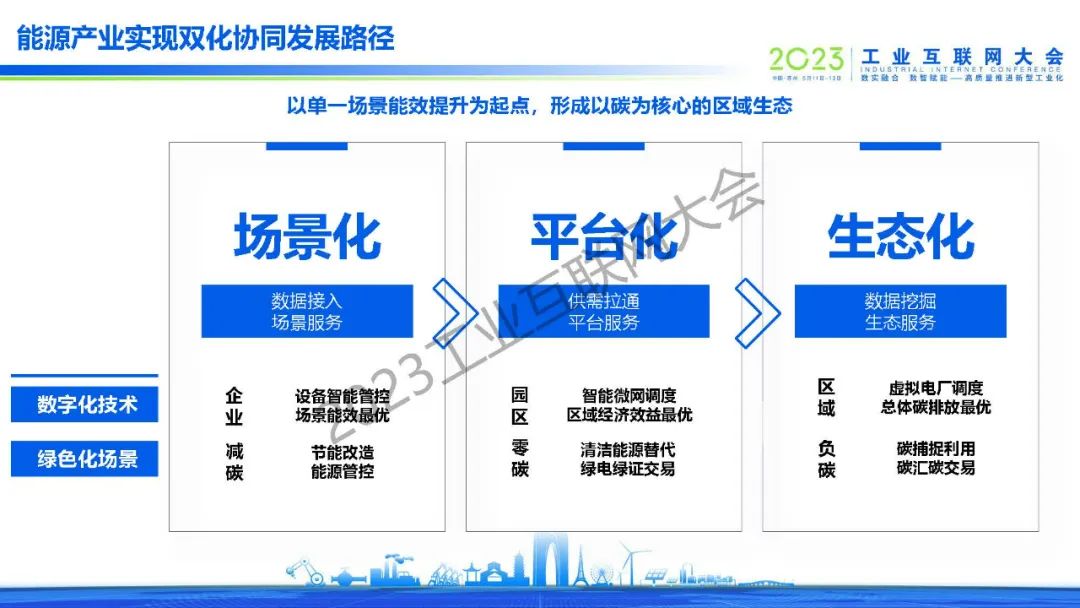 “雙化協(xié)同發(fā)展應(yīng)該是從企業(yè)自身場景落地場景看,隨著市場機制的逐漸完善包括技術(shù)進步,在大的區(qū)域內(nèi)實現(xiàn)碳的資源優(yōu)化配置,最終實現(xiàn)雙化協(xié)同的長期愿景。隨著資源配置的區(qū)域逐漸擴大,區(qū)域內(nèi)場景逐漸豐富,平臺匯聚的數(shù)據(jù)量越來越多,對云計算、大數(shù)據(jù)、人工智能等數(shù)字化技術(shù)的有更高需求來實現(xiàn)場景綠色化。”
