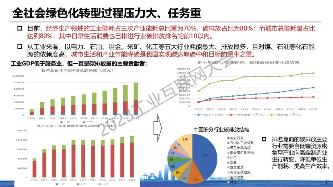 劉毅指出,工業(yè)是能源消耗和碳排放的主要領(lǐng)域,占全社會碳排放總量近60%。工業(yè)互聯(lián)網(wǎng)通過數(shù)字化賦能為工業(yè)企業(yè)提高綜合運行效率和能源利用效率,在實現(xiàn)“雙碳”目標(biāo)下將發(fā)揮關(guān)鍵作用。