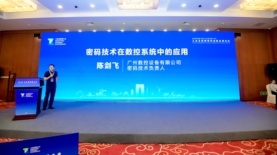 6月14日,在2023工業互聯網大會“工業互聯網密碼創新應用論壇”上,廣州數控設備有限公司密碼技術負責人陳劍飛發表了《密碼技術在數控系統中的應用》的主題演講。