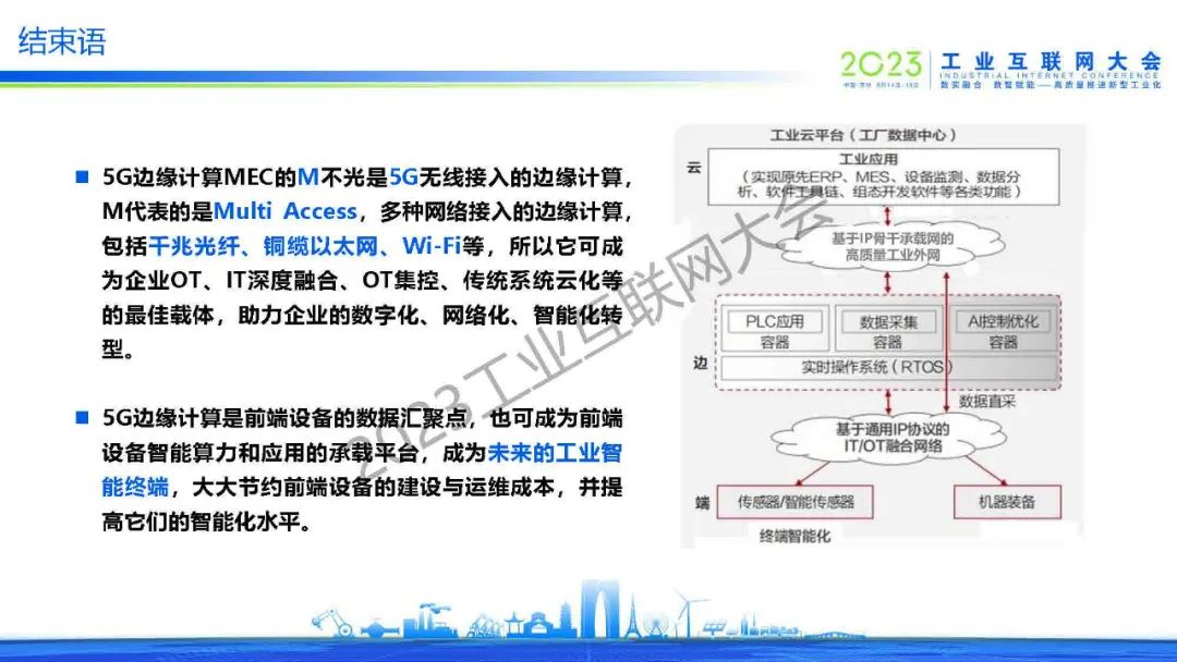 范濟(jì)安表示,5G邊緣計(jì)算MEC的M不光是5G無線接入的邊緣計(jì)算,M代表的是Multi Access,多種網(wǎng)絡(luò)接入的邊緣計(jì)算,包括千兆光纖、銅纜以太網(wǎng)、Wi-Fi等,所以它可成為企業(yè)OT、IT深度融合、OT集控、傳統(tǒng)系統(tǒng)云化等的最佳載體,助力企業(yè)的數(shù)字化、網(wǎng)絡(luò)化、智能化轉(zhuǎn)型。