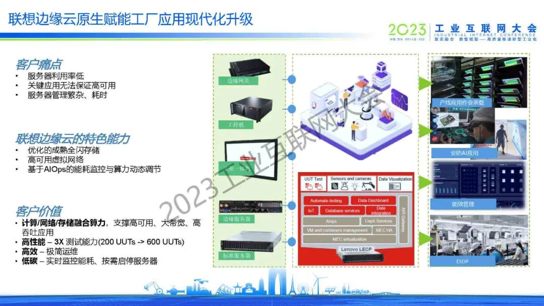 楊春表示,聯想在邊緣計算領域率先布局,打造針對性的邊緣原生算力,構建邊緣原生算力技術架構,不斷推出具備可靠性、靈活性、穩定性、管理性、安全性,五大特性的邊緣計算產品。聯想慧天智能邊緣產品家族正在滿足行業客戶的多樣化算力需求。聯想希望與各行各業客戶一起,共創邊緣計算解決方案,以邊緣原生算力助力行業智能化轉型,共同推動邊緣計算在工業互聯網領域的加速發展。