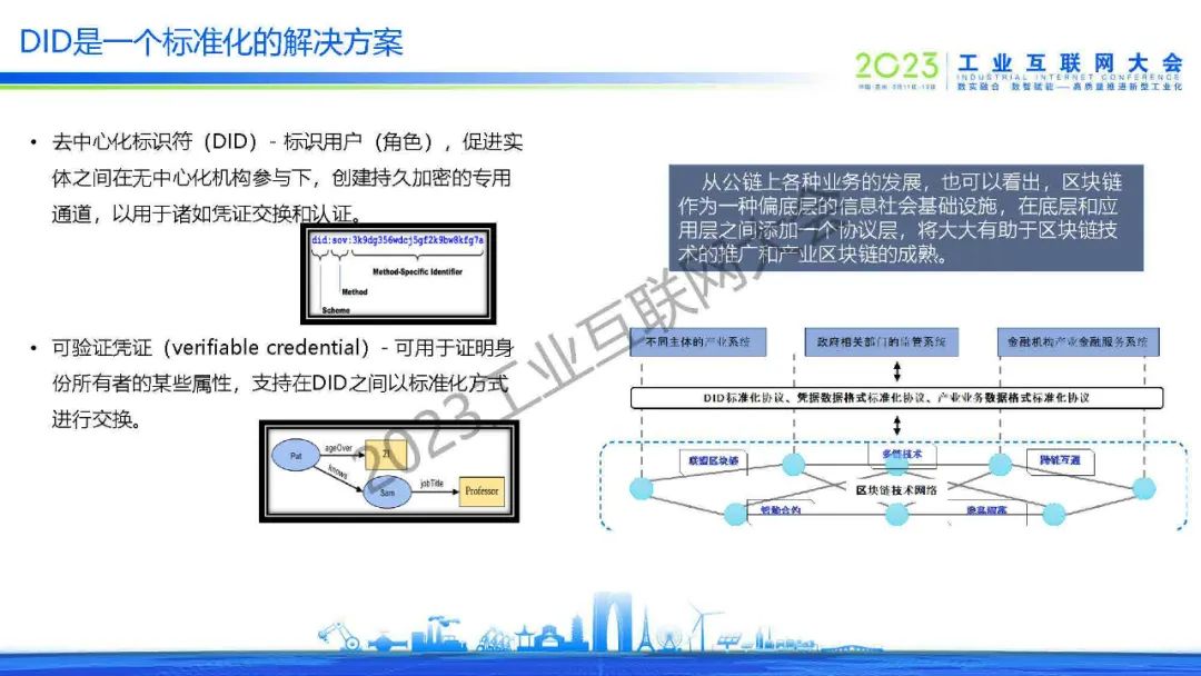 敖萌表示,區塊鏈以分布式身份協議方式為工業互聯網提供底層信任基礎設施,解決人、企、物體,文件等一切實體分布式地產生和驗證身份標識符。同時以加密安全,保護隱私并可遠程驗證的方式,在互聯網上表達現實社會中各種類型的憑證。
