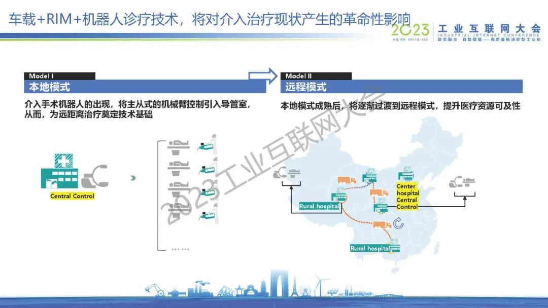 “手術機器人可以通過機械臂的方式,醫(yī)生可以離比較遠的位置去遠程操控機械臂進行手術。這個不光是限于介入,包括像外科、腔鏡、骨科,還有非常完整的網絡環(huán)境,包括像5G和光纖的有線的環(huán)境,有非常多不同的組網方式。”