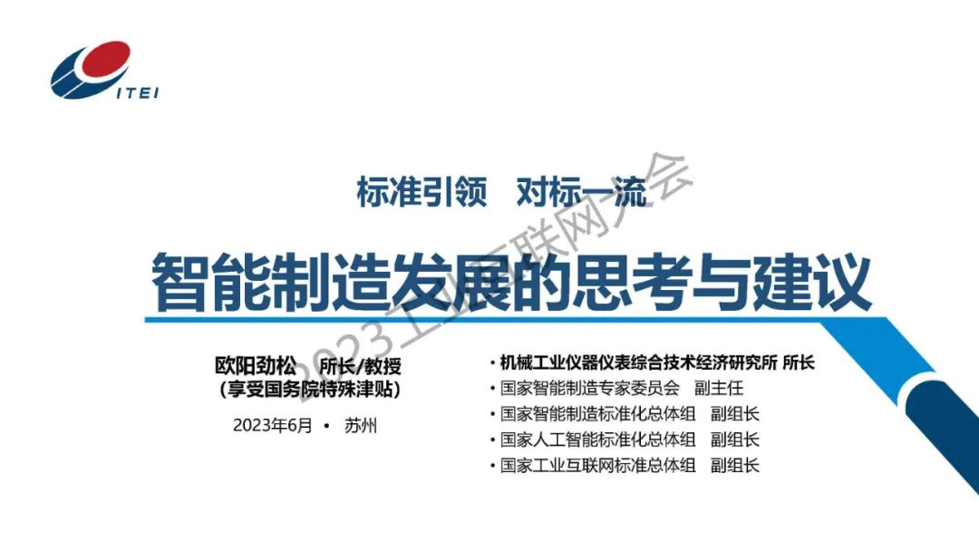 6月16日,在2023工業互聯網大會“工業互聯網與裝備制造行業融合應用論壇”上,機械工業儀器儀表綜合技術經濟研究所所長、國家智能制造專家委員會副主任歐陽勁松發表了《智能制造發展的思考與建議》的主題演講。