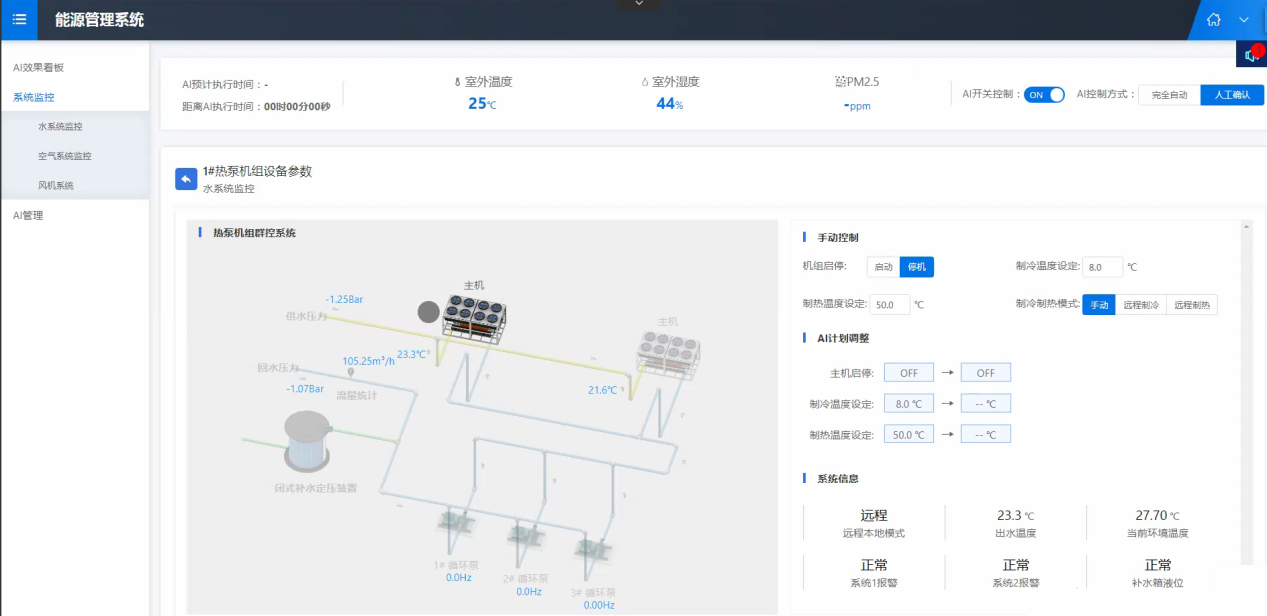 進一步融合數字孿生空間,突破單維數據局域解限制,從空間維度全局角度建立優化算法模型,并通過強化學習,生成系統AI優化算法。當建筑處于不同的環境狀態時,系統會自動感知建筑環境、同時自動判斷并決策系統優化控制參數。實現園區能源系統的自動感知,自動運行。在保證滿足室內環境需求及安全的前提下,更大程度地節能降耗,幫助管理者對園區綜合能源進行高效管理。