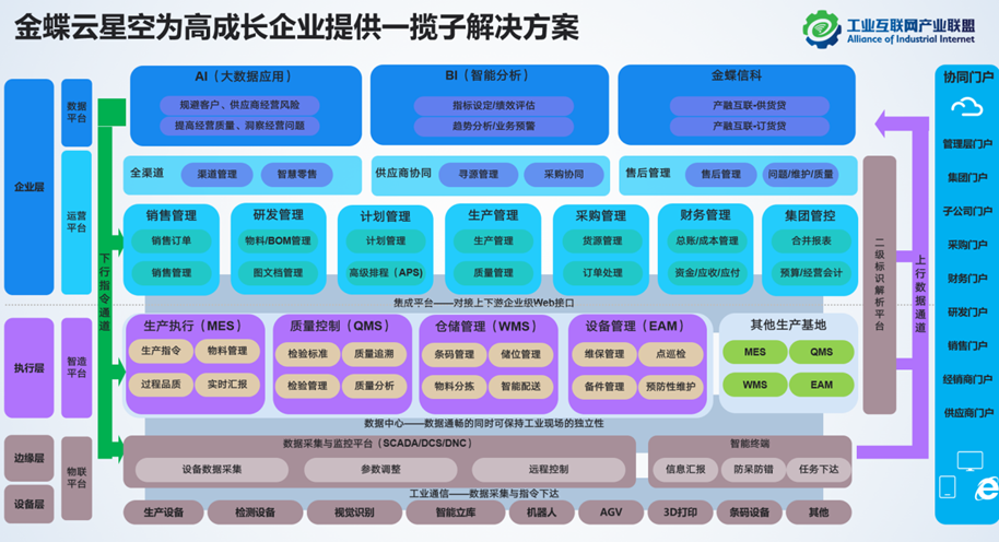 金蝶云·星空高成長工業(yè)互聯(lián)網(wǎng)解決方案依托國家級“雙跨”平臺之一的金蝶星域工業(yè)互聯(lián)網(wǎng)平臺,聚焦高成長型企業(yè),是目前國內(nèi)唯一一款PLM+ERP+MES一體化解決方案。金蝶云·星空堅持“企業(yè)對發(fā)展期望就是我們的奮斗目標(biāo)”的價值觀,和高成長企業(yè)一起共創(chuàng)了在數(shù)字經(jīng)濟(jì)下新的工業(yè)互聯(lián)網(wǎng)解決方案,幫助中小企業(yè)進(jìn)行“數(shù)字化轉(zhuǎn)型”能力建設(shè):在傳統(tǒng)的企業(yè)經(jīng)營管理的基礎(chǔ)上,拓展了解決新產(chǎn)品研發(fā)的PLM,解決柔性制造的MES系統(tǒng),實現(xiàn)供應(yīng)鏈的全渠道、供應(yīng)商協(xié)同等解決方案,幫助中小企業(yè)用數(shù)字化工具實現(xiàn)內(nèi)部的全數(shù)字化覆蓋。