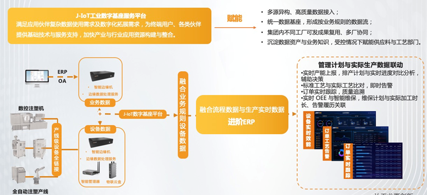 精密注塑數(shù)智場景項目:本項目打造的注塑成型數(shù)智場景,是注塑行業(yè)的標(biāo)桿,也是當(dāng)?shù)財?shù)字化智能化車間的示范單位,獲得了用戶集團內(nèi)部的高度評價,已經(jīng)形成了體系化、標(biāo)準(zhǔn)化的可推廣復(fù)制模式。本項目在注塑成型環(huán)節(jié),以可量化的ROI指標(biāo)完成了驗收,提升了產(chǎn)品的良率和工藝管理水平,每個工作中心平均年提升效益約85萬元,建設(shè)成果包括數(shù)據(jù)采集、設(shè)備接入、精密注塑模型應(yīng)用以及IOT-ERP-MES-OA-WMS生態(tài)聯(lián)動模式。