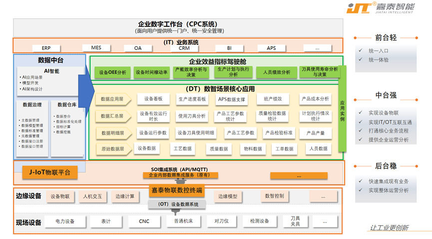 嘉泰智能是工業(yè)互聯(lián)領(lǐng)域數(shù)智場景的核心建設(shè)者,在企業(yè)數(shù)字化、智能制造、智能裝備方面有豐富的產(chǎn)品積累和建設(shè)經(jīng)驗的沉淀,竭誠為各行業(yè)提供賦能與服務(wù)。感謝工業(yè)互聯(lián)網(wǎng)產(chǎn)業(yè)聯(lián)盟給予此次分享的機會,我們期待與行業(yè)同仁進行廣泛和深入的交流、合作,實現(xiàn)資源和成果的分享,為行業(yè)互聯(lián)互通和共創(chuàng)價值互動起來,助力企業(yè)數(shù)智化轉(zhuǎn)型和企業(yè)平臺的價值釋放。