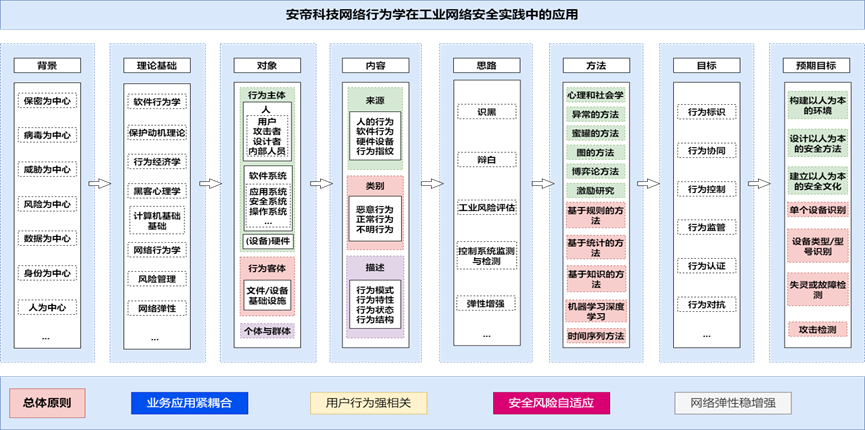 基于安帝科技創(chuàng)立的初衷和使命,結(jié)合當(dāng)前網(wǎng)絡(luò)安全在OT側(cè)發(fā)展的困境,我們選擇網(wǎng)絡(luò)行為學(xué)作為推動OT網(wǎng)絡(luò)安全理論、技術(shù)、產(chǎn)品、方案、服務(wù)等發(fā)展的方法論指導(dǎo)。網(wǎng)絡(luò)行為學(xué)在OT側(cè)網(wǎng)絡(luò)安全能力建設(shè)中落地應(yīng)用,具體就是對主體(人、設(shè)備、軟件、系統(tǒng))的行為的分析評估,以及對客體或行為的受體(系統(tǒng)、軟件、硬件)的監(jiān)測分析,用以甄別異常、故障、網(wǎng)絡(luò)攻擊。試圖通過與用戶業(yè)務(wù)場景、業(yè)務(wù)要素的融合,發(fā)現(xiàn)業(yè)務(wù)行為的模式、特點、規(guī)律,從而建立正常業(yè)務(wù)行為的模型,達(dá)成拒絕一切非業(yè)務(wù)模型行為的目的。